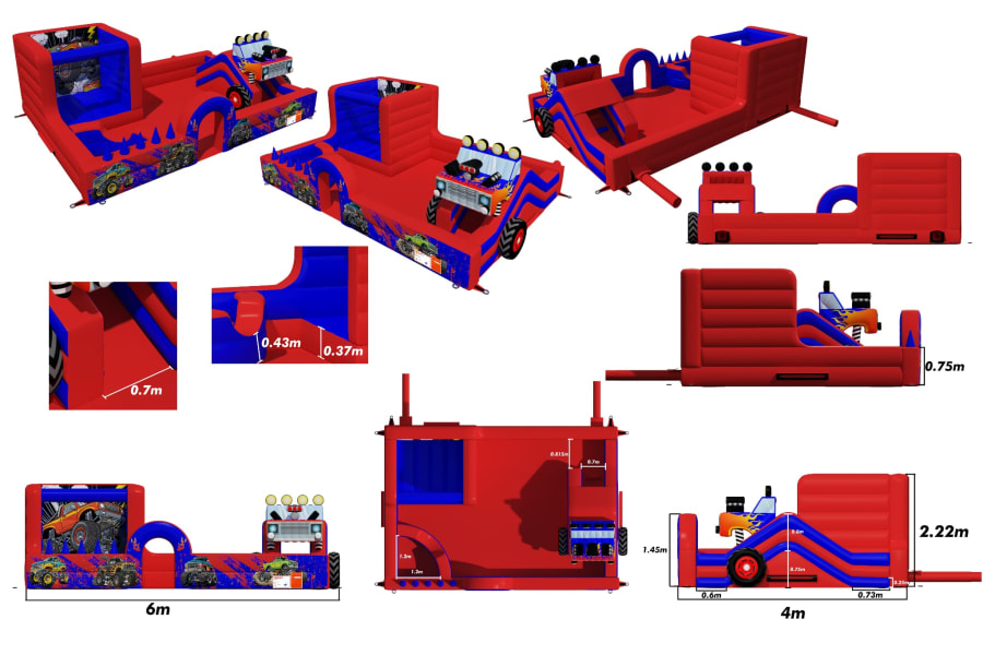 This 3d Monster truck play park would be a great addition to your hire fleet just under 10 ft high too , Being hirers ourselves for schools and cooperate events we know what really works. . Also very popular