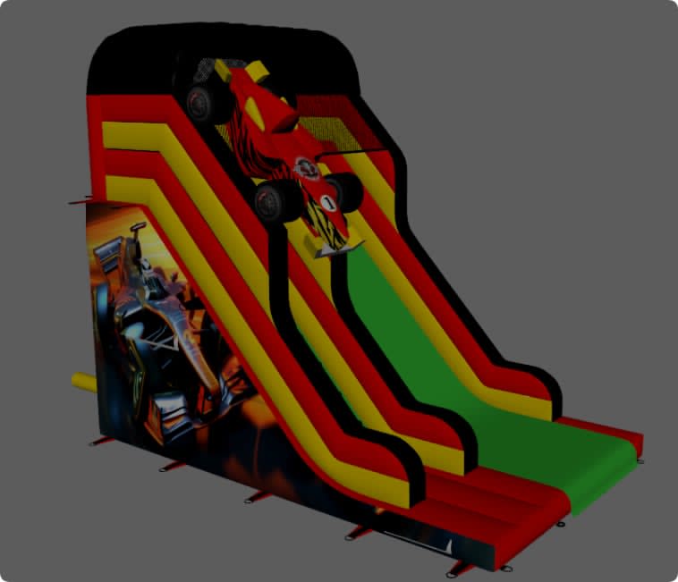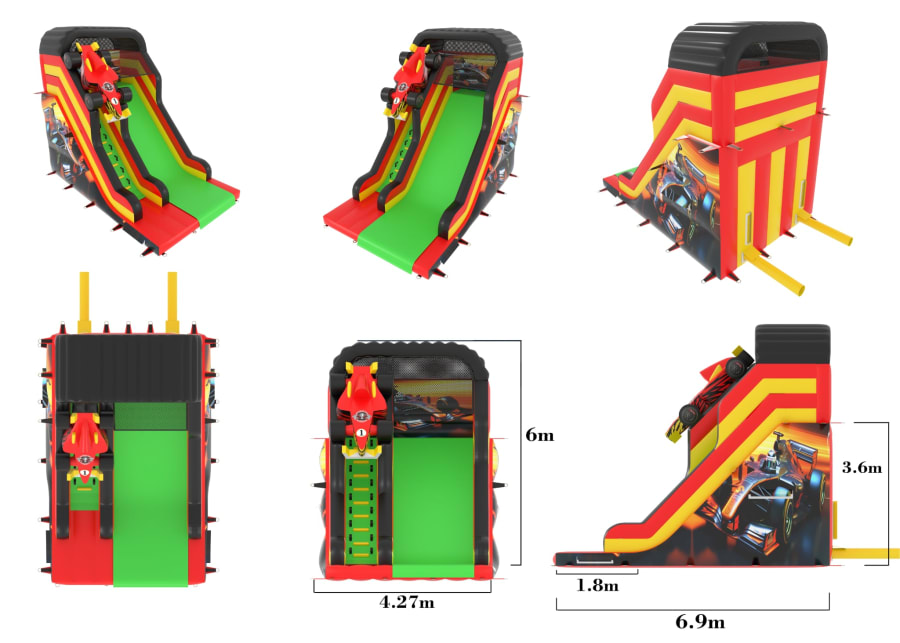 This 12FT Platform 3d race car Slide is our own design and would be a great addition to your hire fleet, Being hirers ourselves for schools and cooperate events we know what really works. This is on another level.